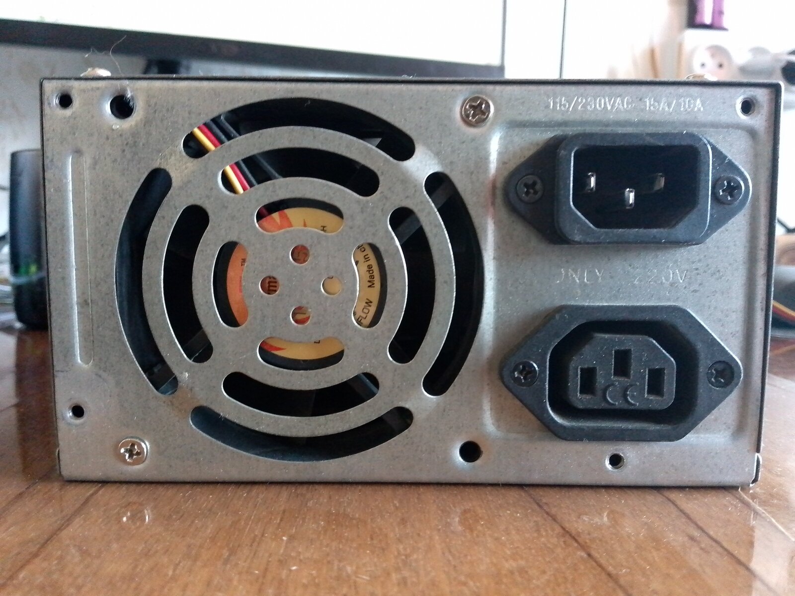 80мм вентилятор, неродной, питание выведено из корпуса БП (очень короткий кабелёк)